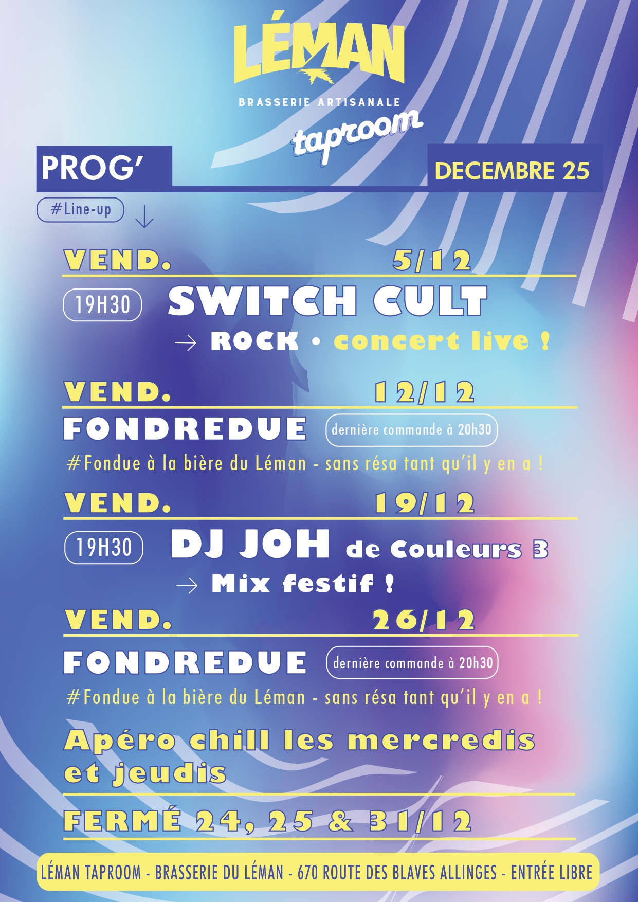 – FONDREDUE : la fondue à la bière du Léman – sans réservation, commande avant 20h30